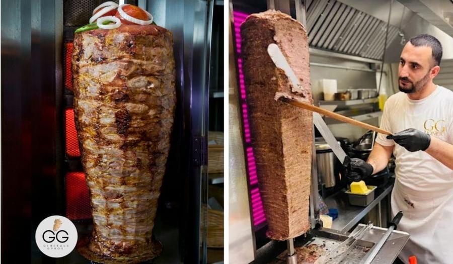 Creating the perfect gyro is an art - and here, the meats are marinated, seasoned with secret spices, slow-roasted on the vertical