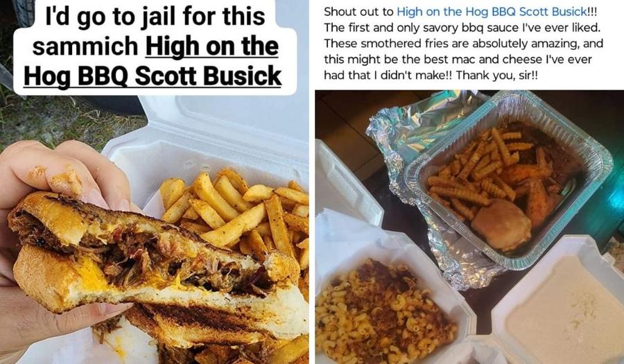 This is the place where pitmaster Scott Busick is is cooking up the most delicious ribs, brisket, burnt ends, pork, chicken and more.  Using a blend of wood and charcoal in his smoker, he cooks them LOW & SLOW.  The result is ridiculously tender meats and a great smoky flavor. Sauces and sides are all homemade. You might as well just order all of them because you're not gonna be able to decide whether you want the mac & cheese or the potato salad or the meaty baked beans or the fries. High on the Hog is food truck food at its best.  And don't forget the Smash Burger.  (Try it topped with pulled pork - OMG)