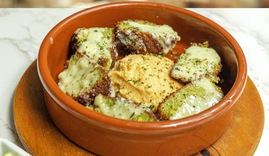 To assure the authenticity of their family’s secret recipes, ingredients not found stateside are flown in directly from Greece and surrounding shores. The Small Plates Menu is perfect for grazing while enjoying a bottle of Greek wine. Calamari is grilled and stuffed with shrimp, asparagus, tomato and a chipotle aoli. Chipotle? In Greece? Yes - remember, FUSION that's in their name. Share some Greek favorites such as tableside-created Tzatziki, Spinach Pie, Shrimp Saganaki and Gravlax.